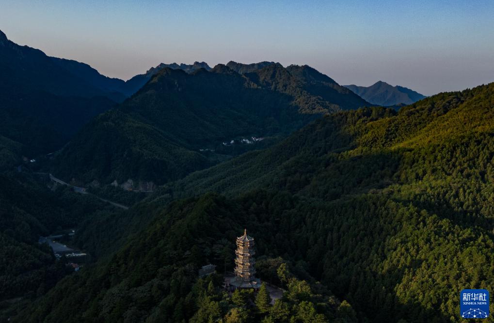 9月9日拍攝的九華山清晨日出時(shí)分景色(無(wú)人機照片)。
