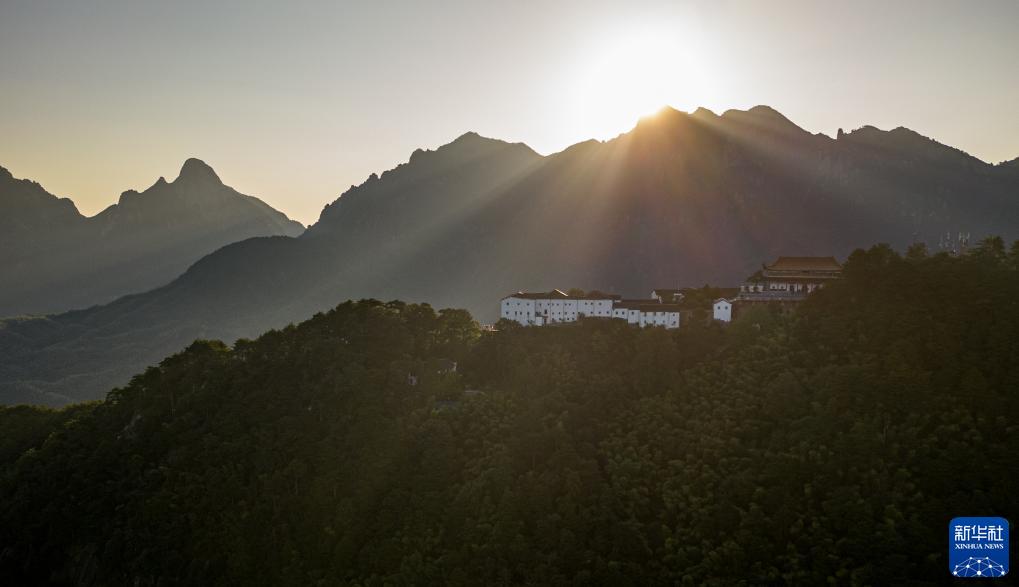 9月9日拍攝的九華山清晨日出時(shí)分景色(無(wú)人機照片)。