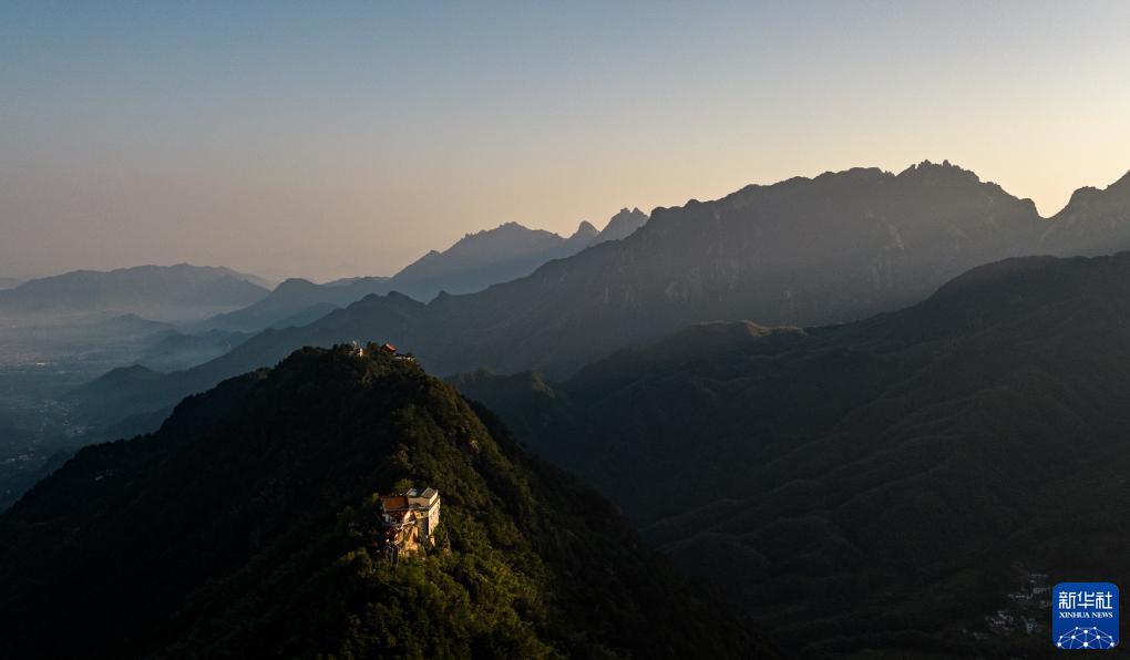 9月9日拍攝的九華山清晨日出時(shí)分景色(無(wú)人機照片)。