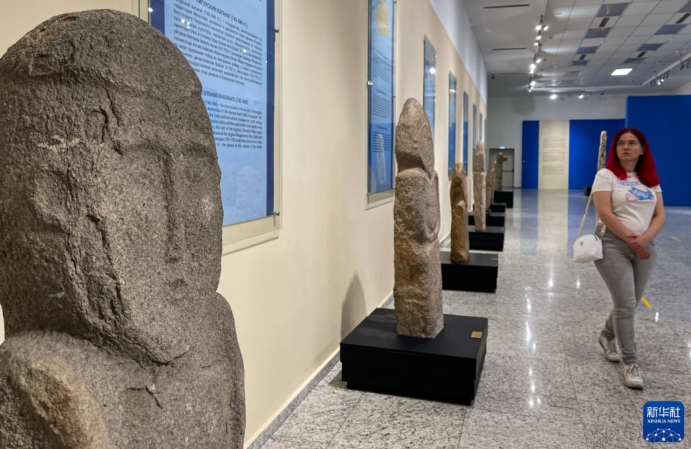 9月8日,一名女子在位于哈薩克斯坦首都阿斯塔納的哈薩克斯坦國家博物館內參觀(guān)。