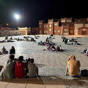 9月9日凌晨,在距離震中200多公里的摩洛哥瓦爾扎扎特市,居民在市區的空地避險(手機照片)。