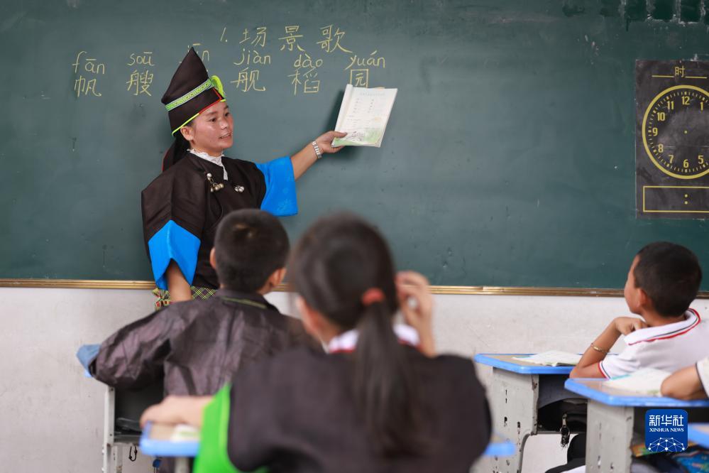 柳吉小學(xué)教師王章艷在給學(xué)生上語(yǔ)文課(9月7日攝)。