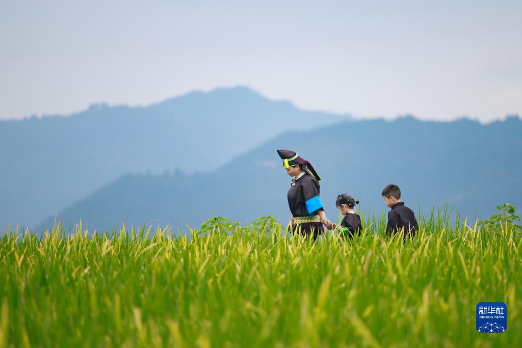 柳吉小學(xué)教師王章艷(左)在去往學(xué)生龍運平(右)和龍運凡家中家訪(fǎng)的路上(9月7日攝)。