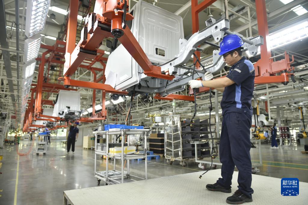 9月8日,河南省安陽(yáng)市安陽(yáng)縣一家新能源汽車(chē)制造企業(yè)的工作人員在車(chē)間進(jìn)行裝配作業(yè)。
