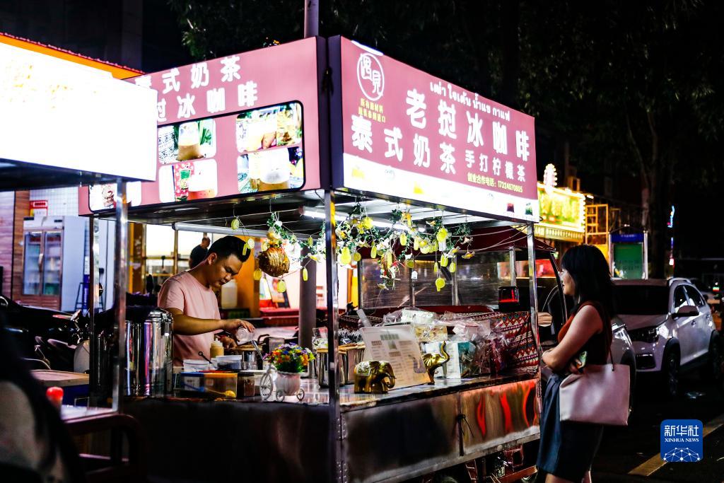 9月8日,市民在廣西南寧的夜市上購買(mǎi)東南亞特色飲品。