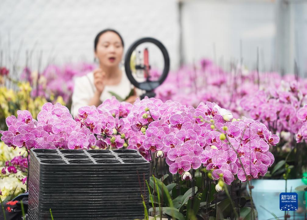 9月9日,工作人員在宿遷市王官集鎮蝴蝶蘭大世界大棚內進(jìn)行網(wǎng)絡(luò )直播。
