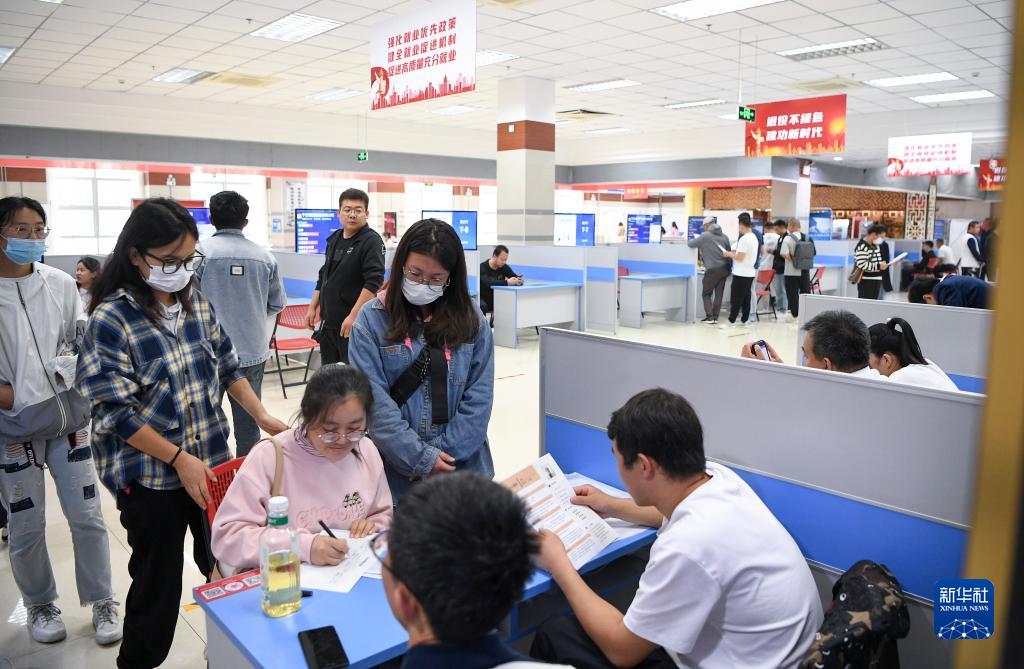 9月9日,求職者在招聘會(huì )現場(chǎng)登記意向崗位信息。