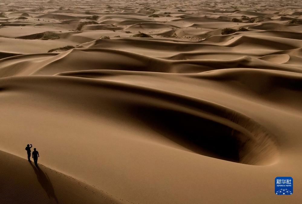 這是9月7日在新疆喀什地區麥蓋提縣N39°沙漠旅游景區拍攝的沙漠風(fēng)光(無(wú)人機照片)。