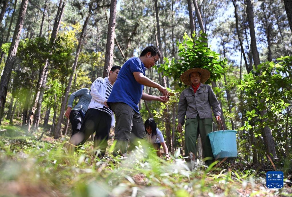 9月6日,曾念開(kāi)(中)在指導海南省保亭黎族苗族自治縣毛感鄉的農民種植靈芝。