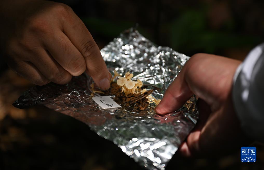 9月5日,曾念開(kāi)在海南鸚哥嶺熱帶雨林采集一種新發(fā)現的雞油菌。