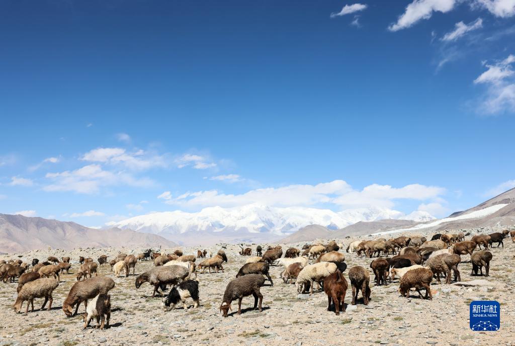 在“冰川之父”慕士塔格峰腳下,新疆塔什庫爾干塔吉克自治縣塔合曼鄉境內的一片天然草場(chǎng)吸引周邊鄉村的牧羊人在此放牧。進(jìn)入秋季以來(lái),草場(chǎng)漸漸泛黃,屹立于遠處的慕士塔格峰和公格爾九別峰在藍天白云的映襯下格外壯美,一幅寧靜悠遠的牧羊圖引人入勝。