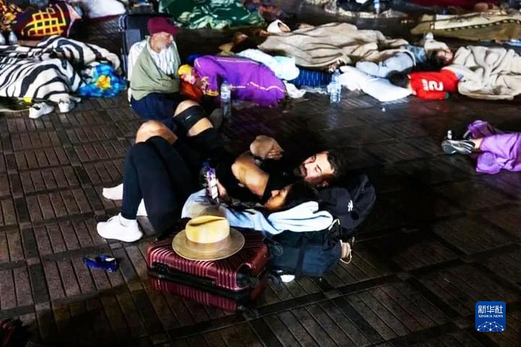 9月9日凌晨,在摩洛哥南部城市馬拉喀什,居民在室外避險。