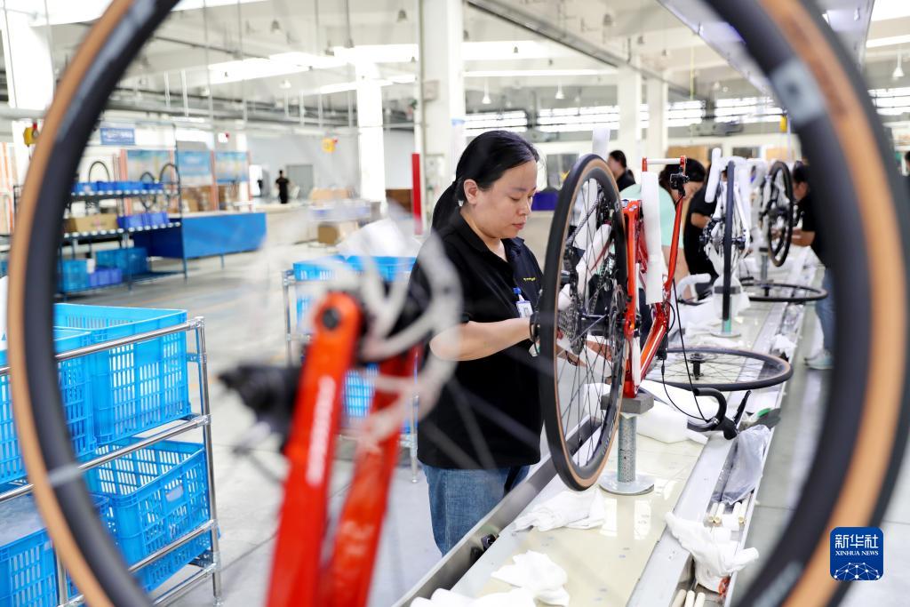 9月9日,在山東樂(lè )陵市一家企業(yè)的碳纖維自行車(chē)生產(chǎn)車(chē)間,工人在組裝自行車(chē)。新華社發(fā)(張進(jìn)剛 攝)