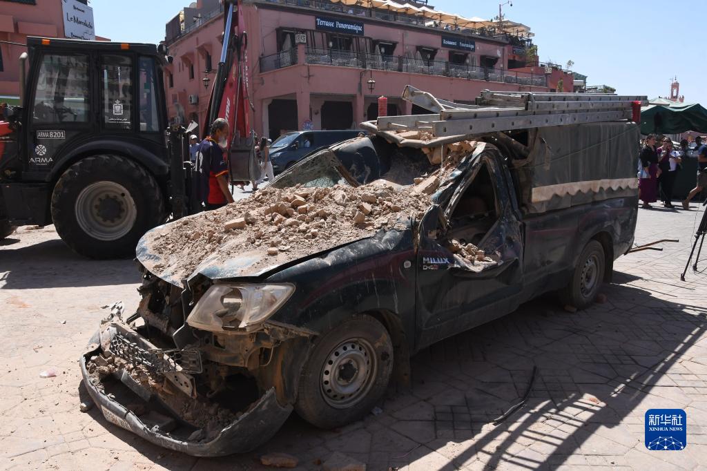 這是9月9日在摩洛哥南部城市馬拉喀什拍攝的受損車(chē)輛。