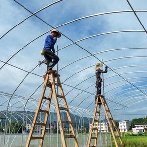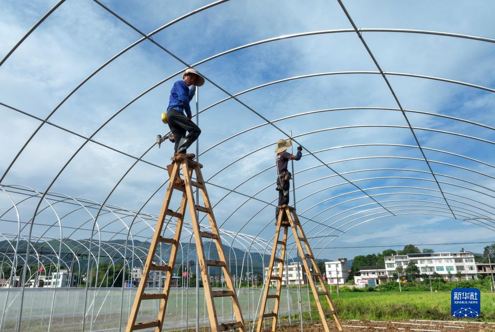 9月9日,工人在常寧市洋泉鎮巷坪村智慧育苗大棚施工現場(chǎng)施工。