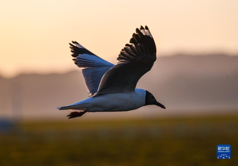 這是8月22日在四川省阿壩藏族羌族自治州若爾蓋縣花湖拍攝的棕頭鷗。