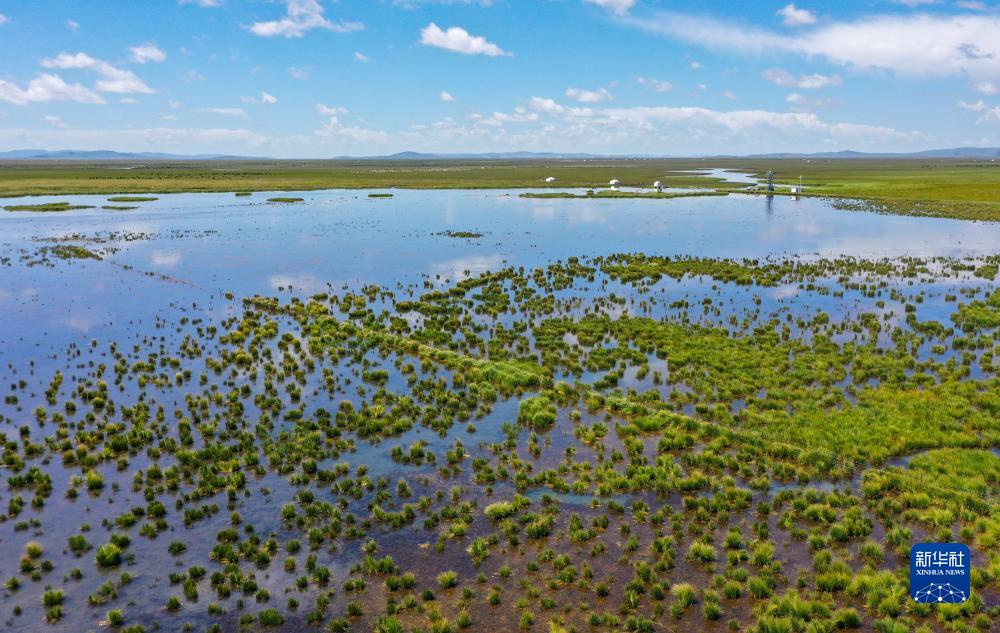 這是8月22日在四川省阿壩藏族羌族自治州若爾蓋縣拍攝的花湖(無(wú)人機照片)。