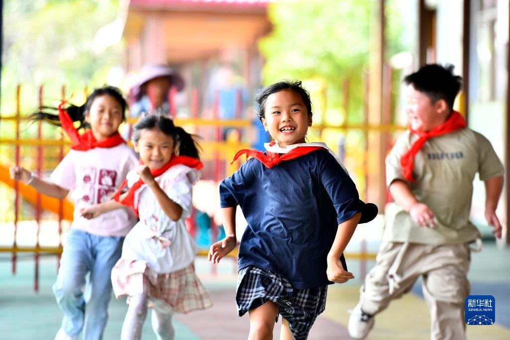 9月5日,在微山縣高樓鄉渭河小學(xué),孩子們在課間做游戲。
