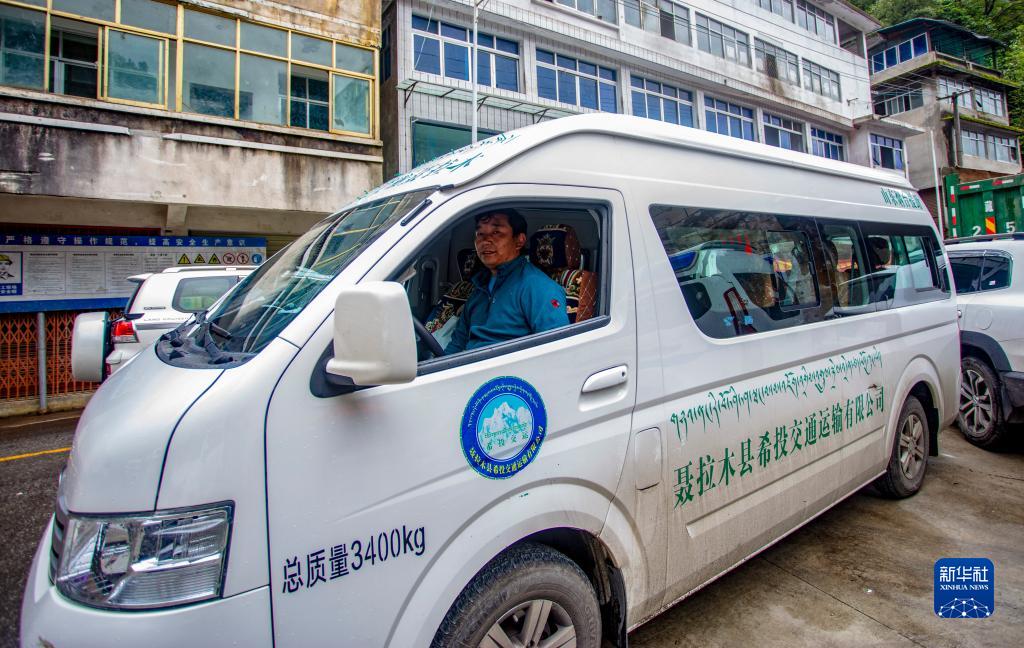 駕駛員旦增尼瑪運營(yíng)的旅游車(chē)負責接送中國游客往返樟木口岸與聶拉木縣城(9月9日攝)。樟木口岸恢復客運功能后,他每天都要在這條線(xiàn)路上跑4、5個(gè)來(lái)回。