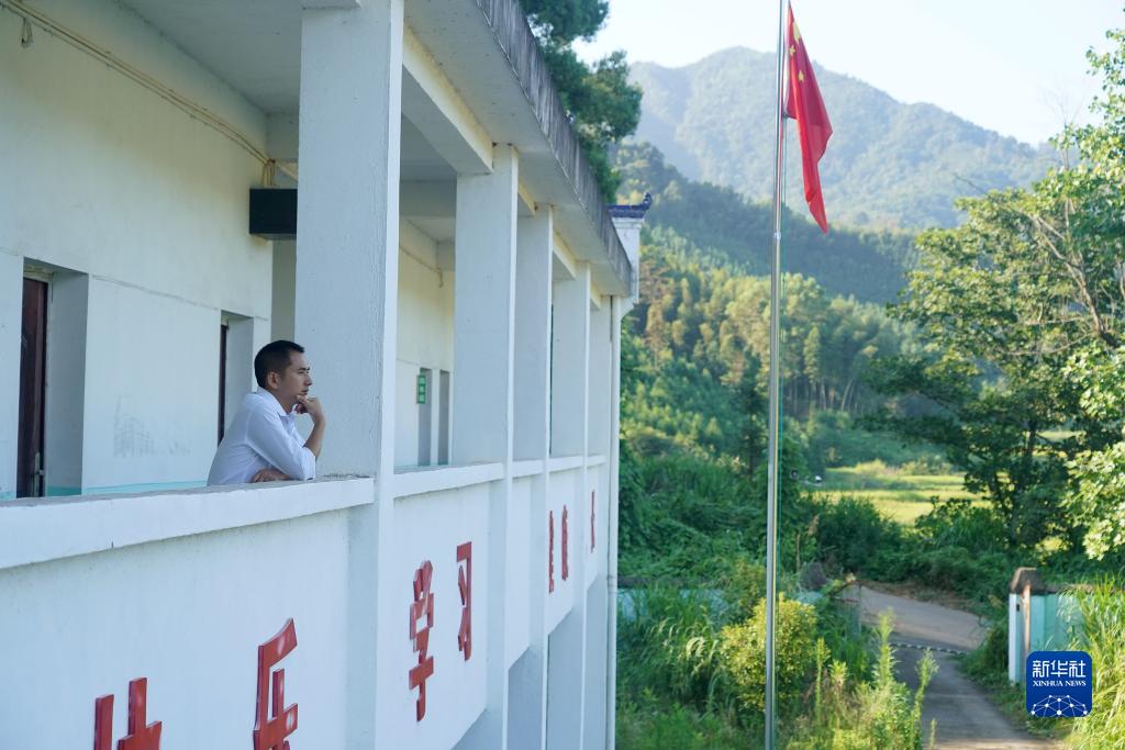 在江西省高安市華林山鎮中心小學(xué)朱家教學(xué)點(diǎn),李新江望著(zhù)空空的校園和遠山(9月4日攝)。