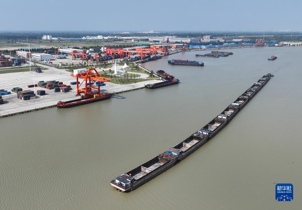 9月10日拍攝的運河宿遷港集裝箱碼頭(無(wú)人機照片)。