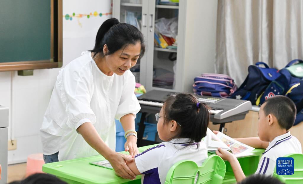 在海南(??冢┨厥饨逃龑W(xué)校啟智三(1)班,班主任符堯惠為學(xué)生們上課(9月5日攝)。