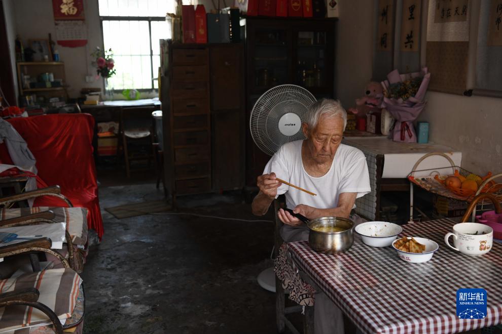 9月8日,在安徽省馬鞍山市和縣卜陳村的家中,葉連平在吃午飯。