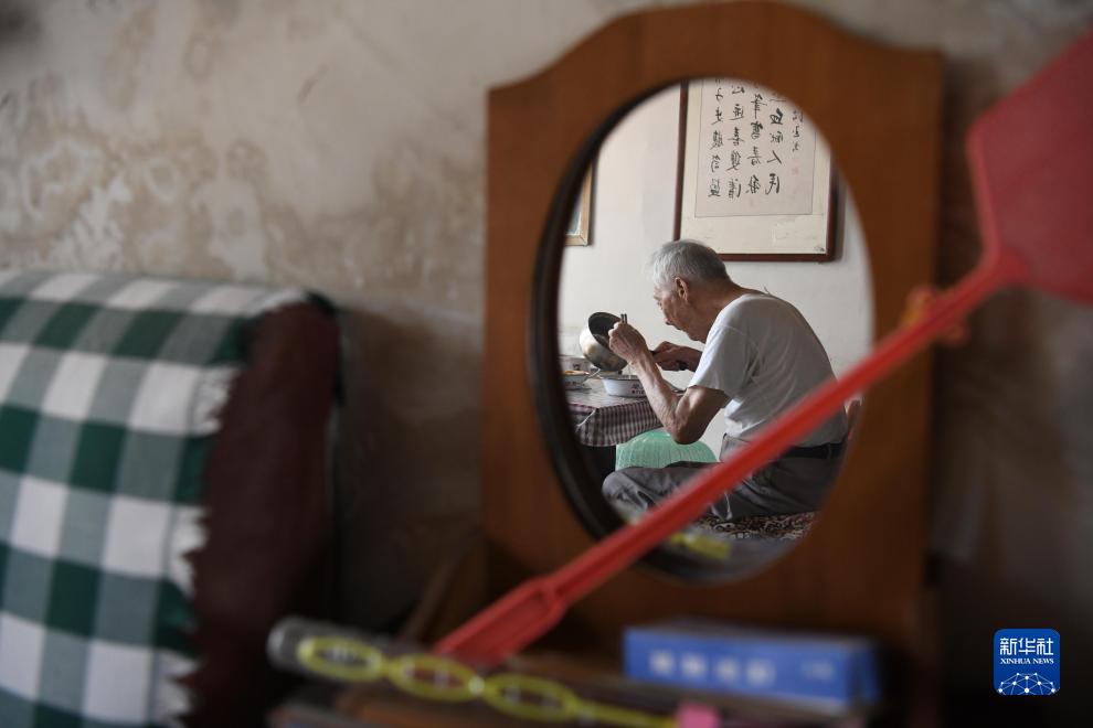 9月8日,在安徽省馬鞍山市和縣卜陳村的家中,葉連平在吃午飯。