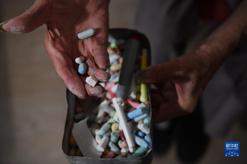 9月8日,在安徽省馬鞍山市和縣烏江鎮卜陳村的“留守未成年人之家”,葉連平展示他用過(guò)的粉筆頭,只要能用指尖捏得住,他都不舍得扔掉。