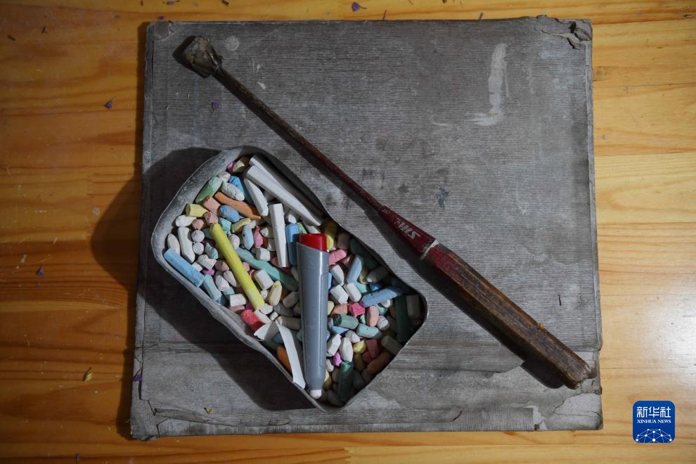 這是9月8日拍攝的葉連平使用多年的教鞭和粉筆盒。