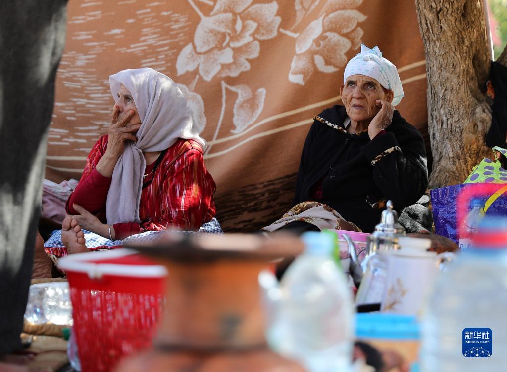 這是9月10日在摩洛哥震中附近的艾米茲米茲村一處臨時(shí)安置點(diǎn)拍攝的受災群眾。