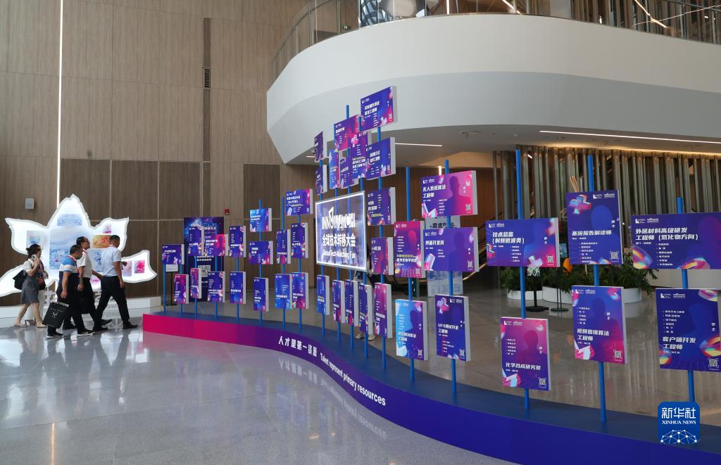 9月10日,參觀(guān)者走過(guò)全球技術(shù)轉移大會(huì )入口處的人才主題裝飾。