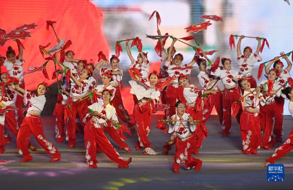 9月10日,參加展演活動(dòng)的廣場(chǎng)舞團隊在表演。