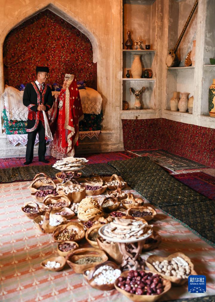 在新疆喀什古城景區“巴依老爺的家”景點(diǎn),游客在拍照留念(9月7日攝)。