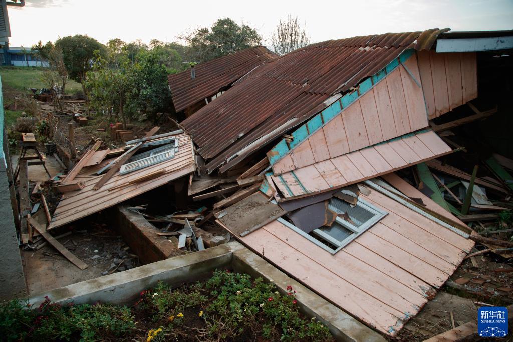 這是9月10日在巴西南里奧格蘭德州科利納斯市拍攝的被洪水摧毀的房屋。