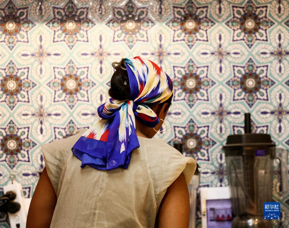 海迪雅在自家咖啡館內制作飲品(9月7日攝)。