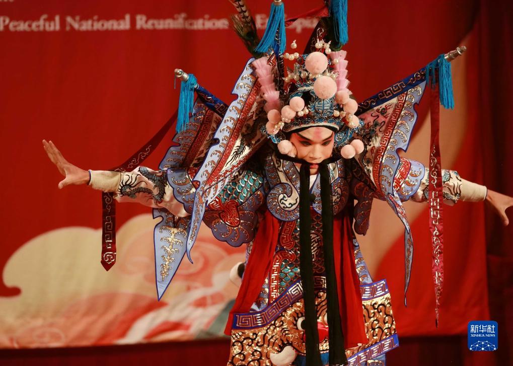 9月9日,婺劇演員在埃塞俄比亞首都亞的斯亞貝巴表演《呂布試馬》。