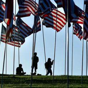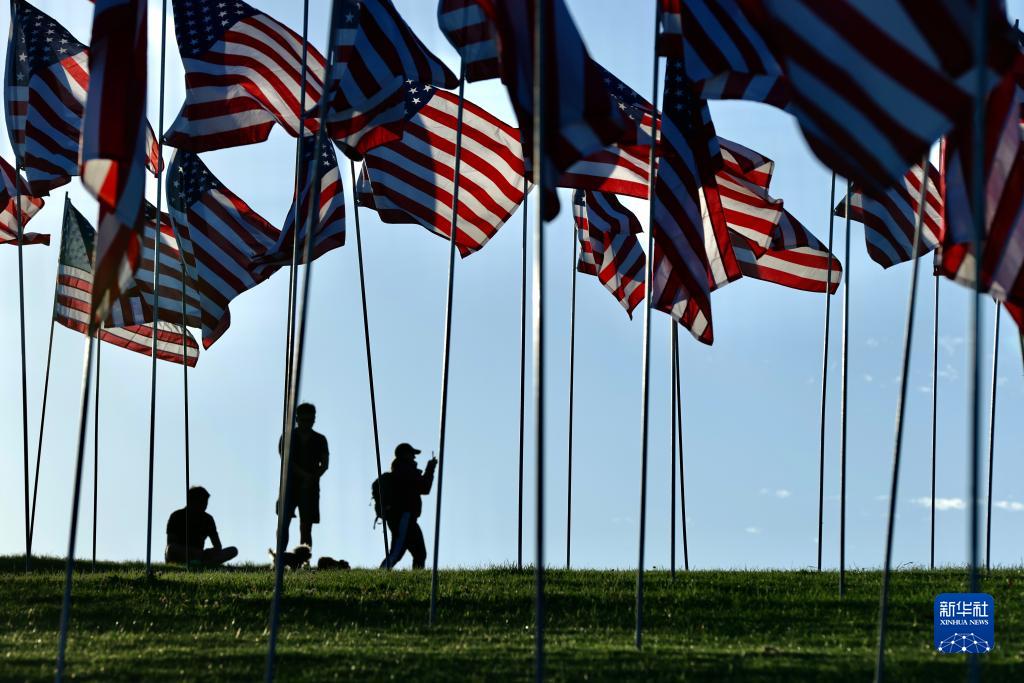 9月10日,人們參觀(guān)美國加利福尼亞州馬利布佩珀代恩大學(xué)草坪上的“旗?!?。
