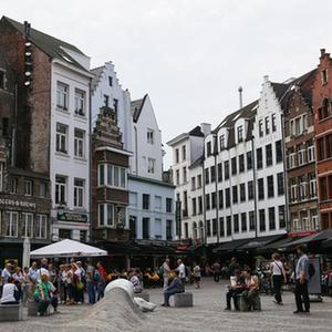 這是9月11日在比利時(shí)安特衛普拍攝的商業(yè)區一景。