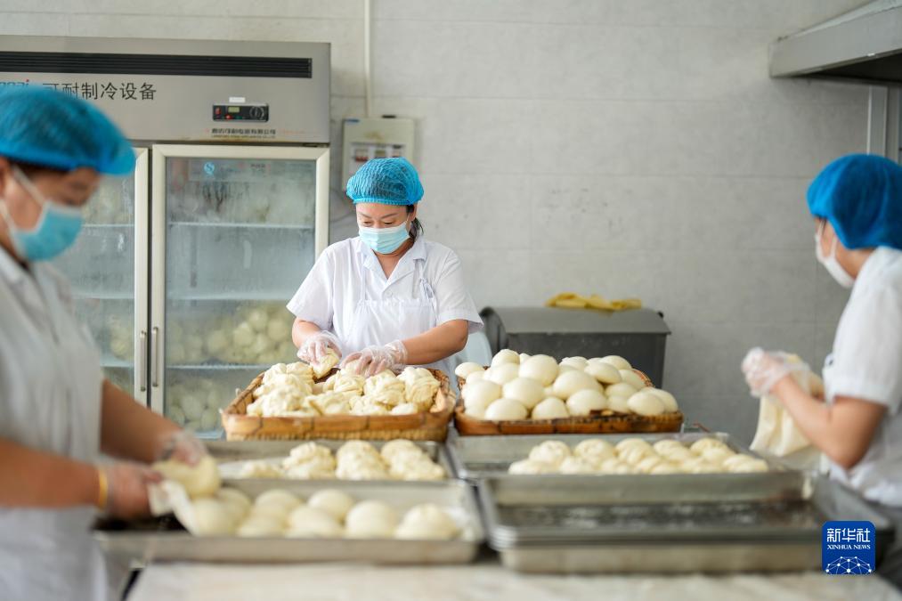 9月12日,河北省唐山市古冶區一家養老機構的工作人員為老人們準備餐食。