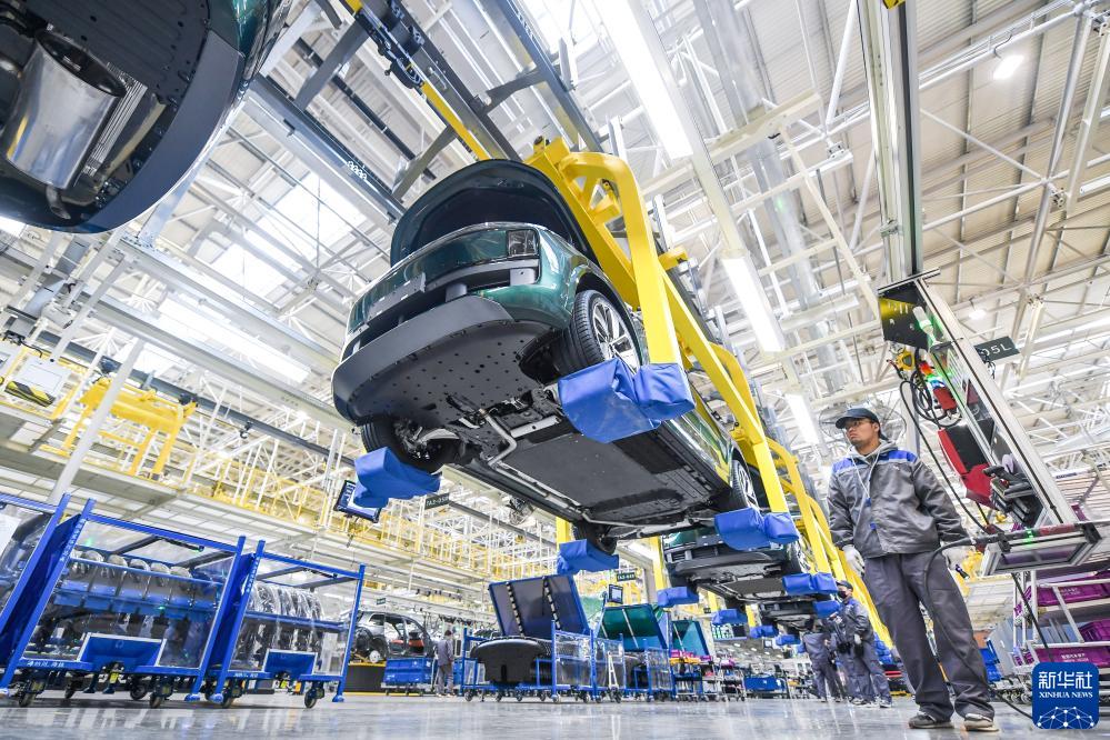理想汽車(chē)江蘇常州基地的工人在進(jìn)行生產(chǎn)作業(yè)(2023年2月15日攝)。