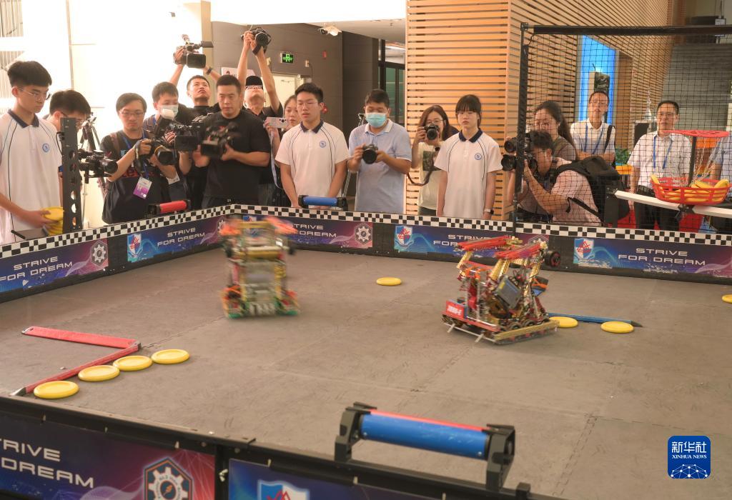 9月12日,福州第三中學(xué)學(xué)生進(jìn)行機器人表演。