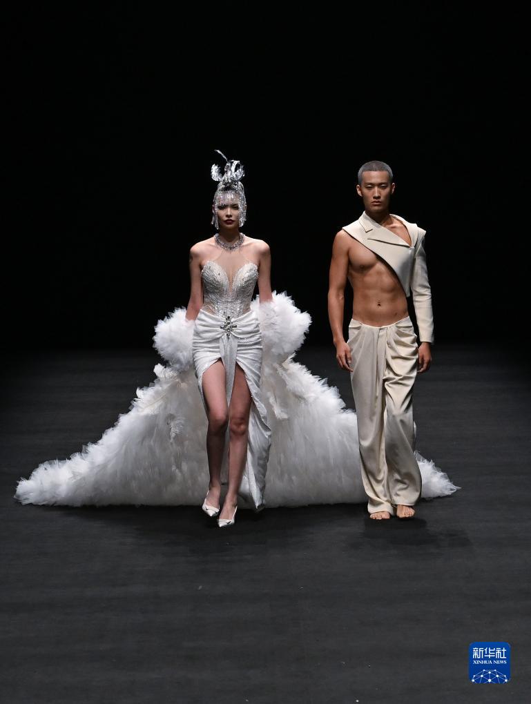 9月12日,模特展示設計師任柯明設計的時(shí)裝。