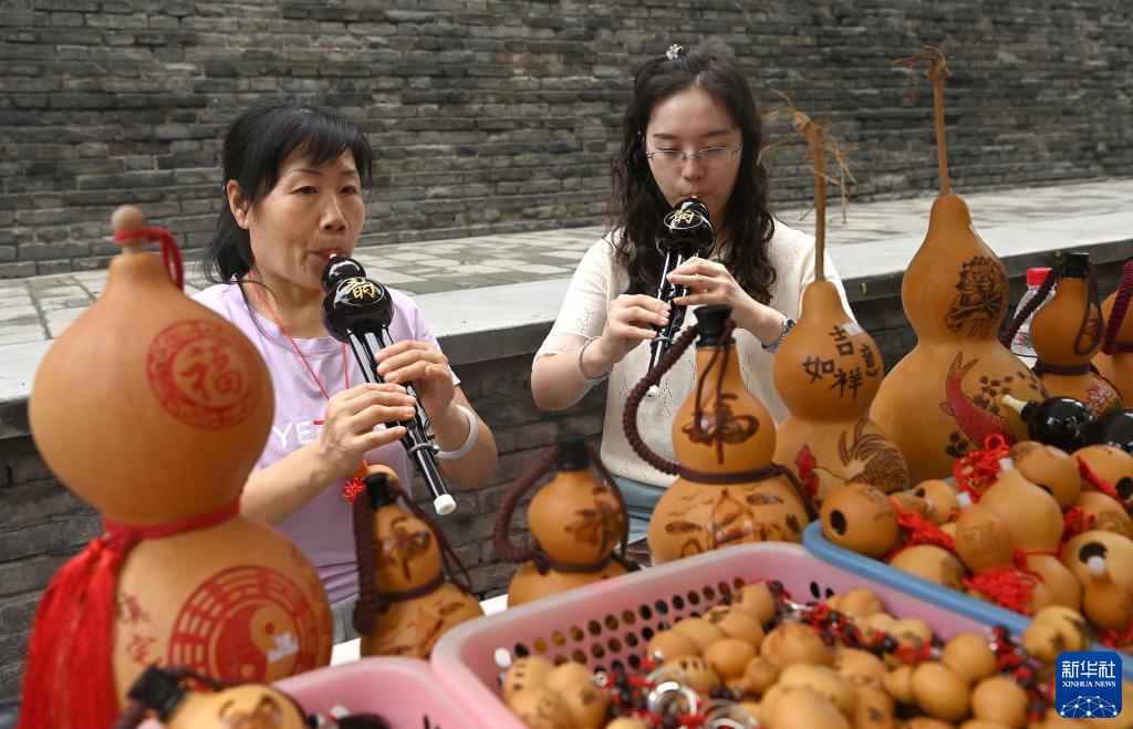 當日,陜西省西安市新城區“遇見(jiàn)城墻·非遺韻”非遺集市主題活動(dòng)在西安城墻中山門(mén)下舉辦。秦腔、華陰老腔等特色非遺節目在永興坊戲樓前輪番表演,皮影、布藝、工藝葫蘆等二十多種非遺作品在順城巷內集中亮相,豐富市民文化生活的同時(shí)也讓游客感受到陜西非遺的獨特魅力。