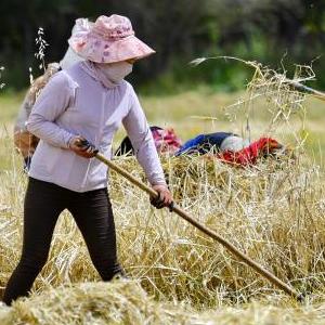 近日,西藏拉薩市曲水縣青稞成熟,人們忙著(zhù)收割青稞,感受豐收的喜悅。