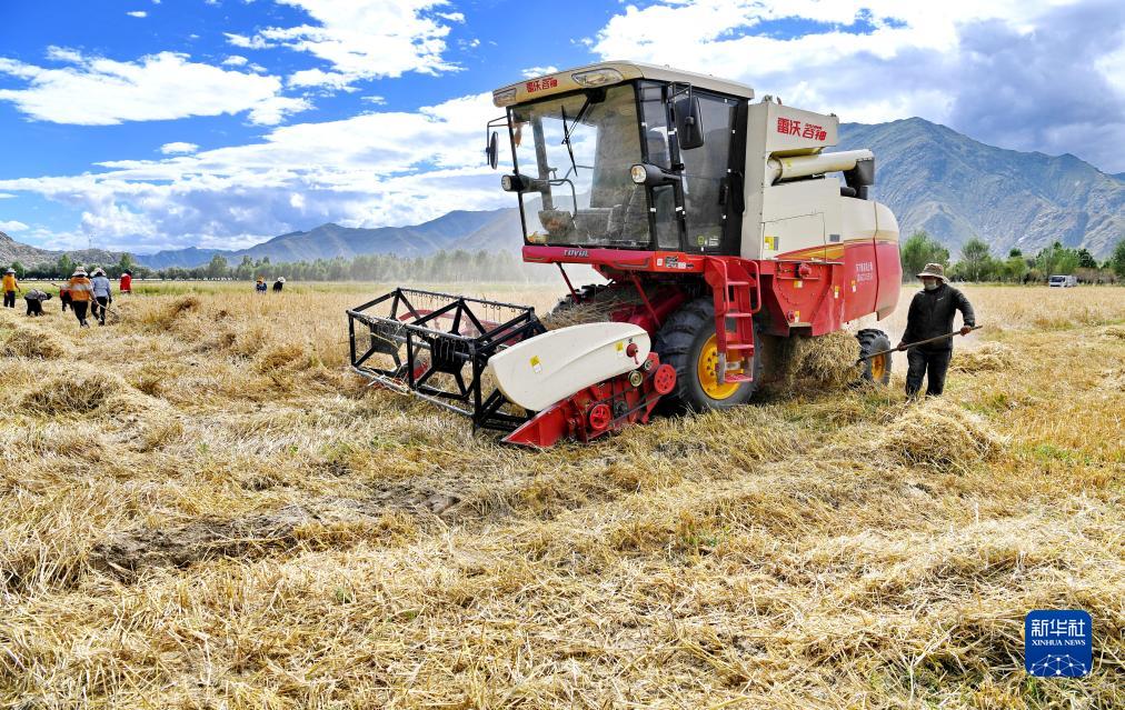 近日,西藏拉薩市曲水縣青稞成熟,人們忙著(zhù)收割青稞,感受豐收的喜悅。