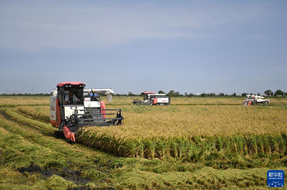 天津:水稻收割忙