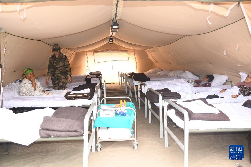 這是9月12日拍攝的位于摩洛哥豪茲省的艾斯尼村的臨時(shí)軍事醫院。