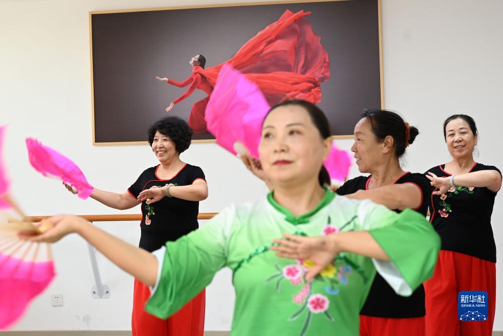 9月13日,老人在承德市碧園社區日間照料中心扭秧歌。