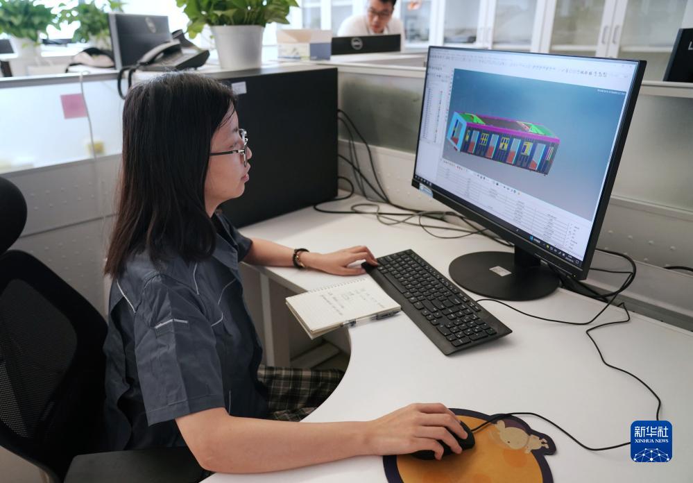 8月10日,京投裝備技術(shù)研究院的工程師在研究地鐵列車(chē)設計方案。